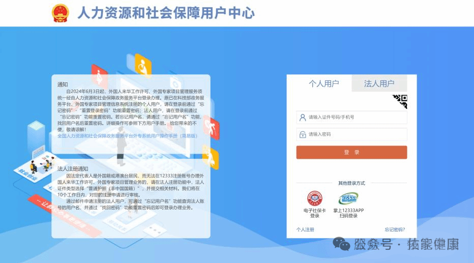 人力资源和社会保障用户中心登录页面图示